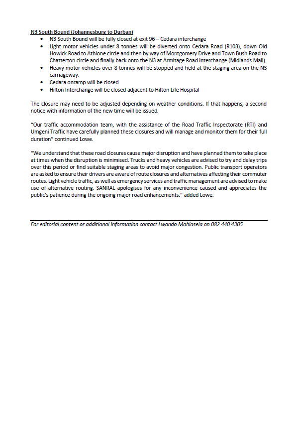 - Days of the week: Indicates the days of the week on which you should be notified of changes to your route.